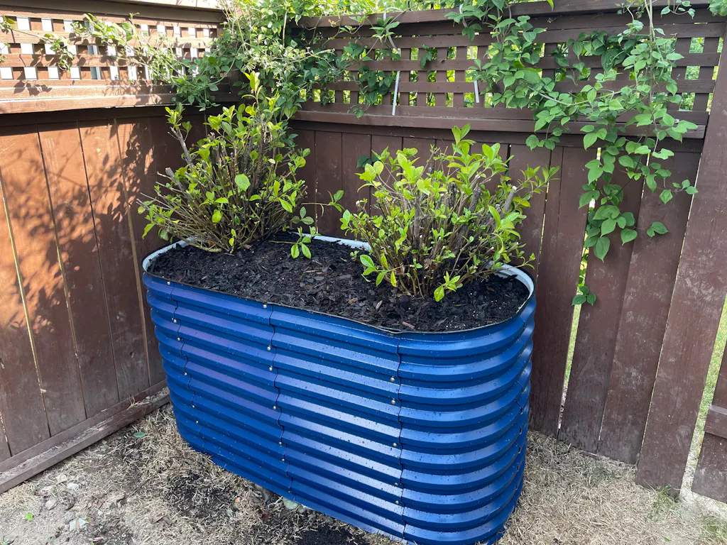 raised planter boxes blue growing plants-Vegega